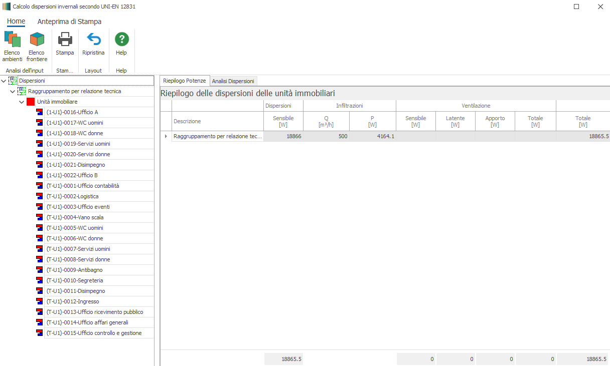 l'esito del calcolo delle dispersioni secondo UNI EN 12831.
