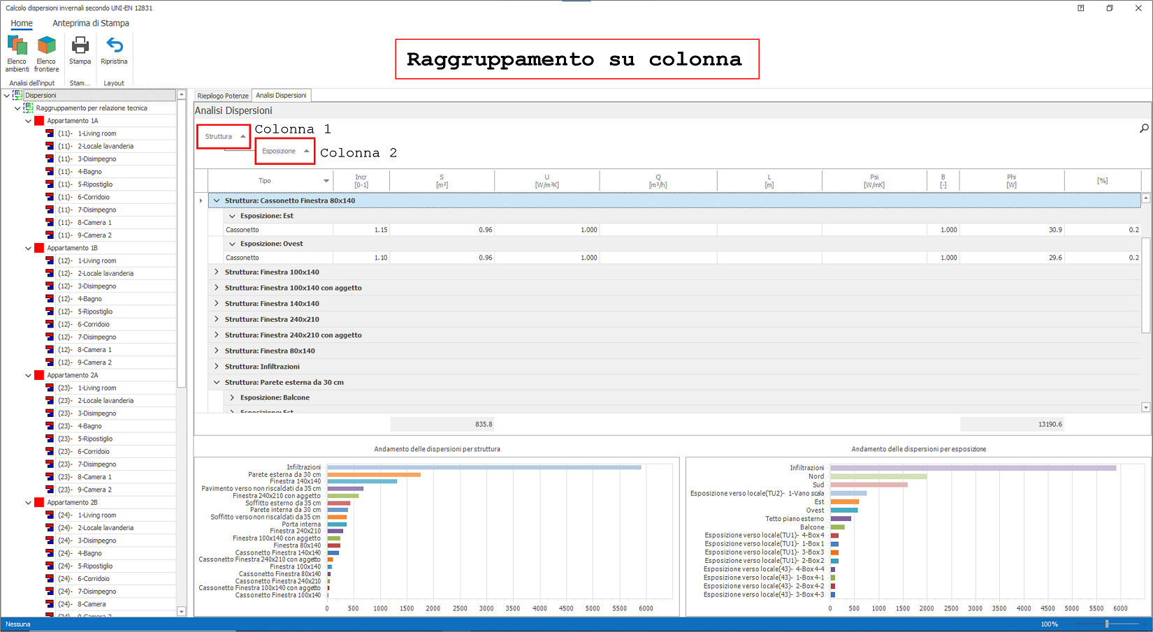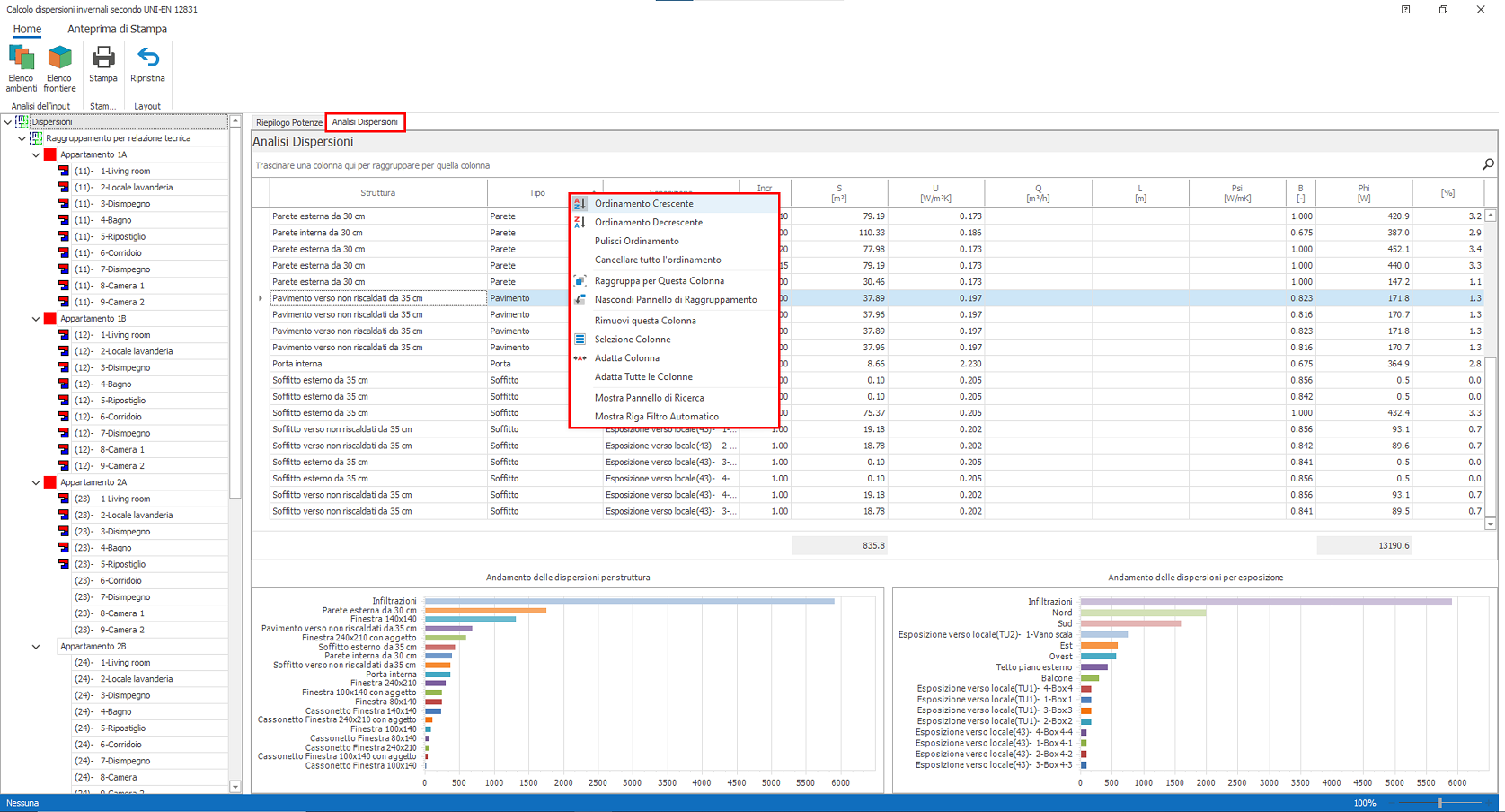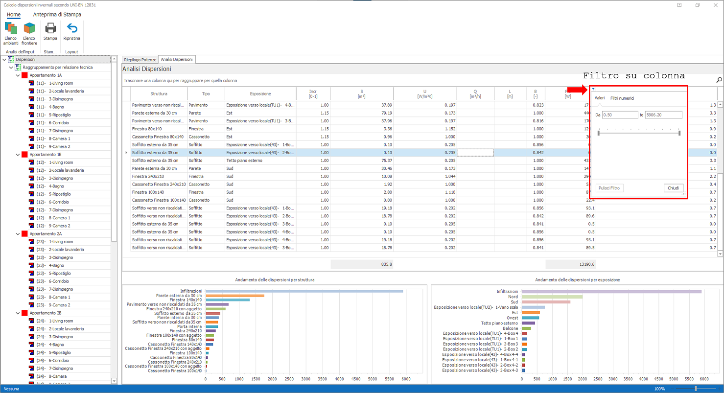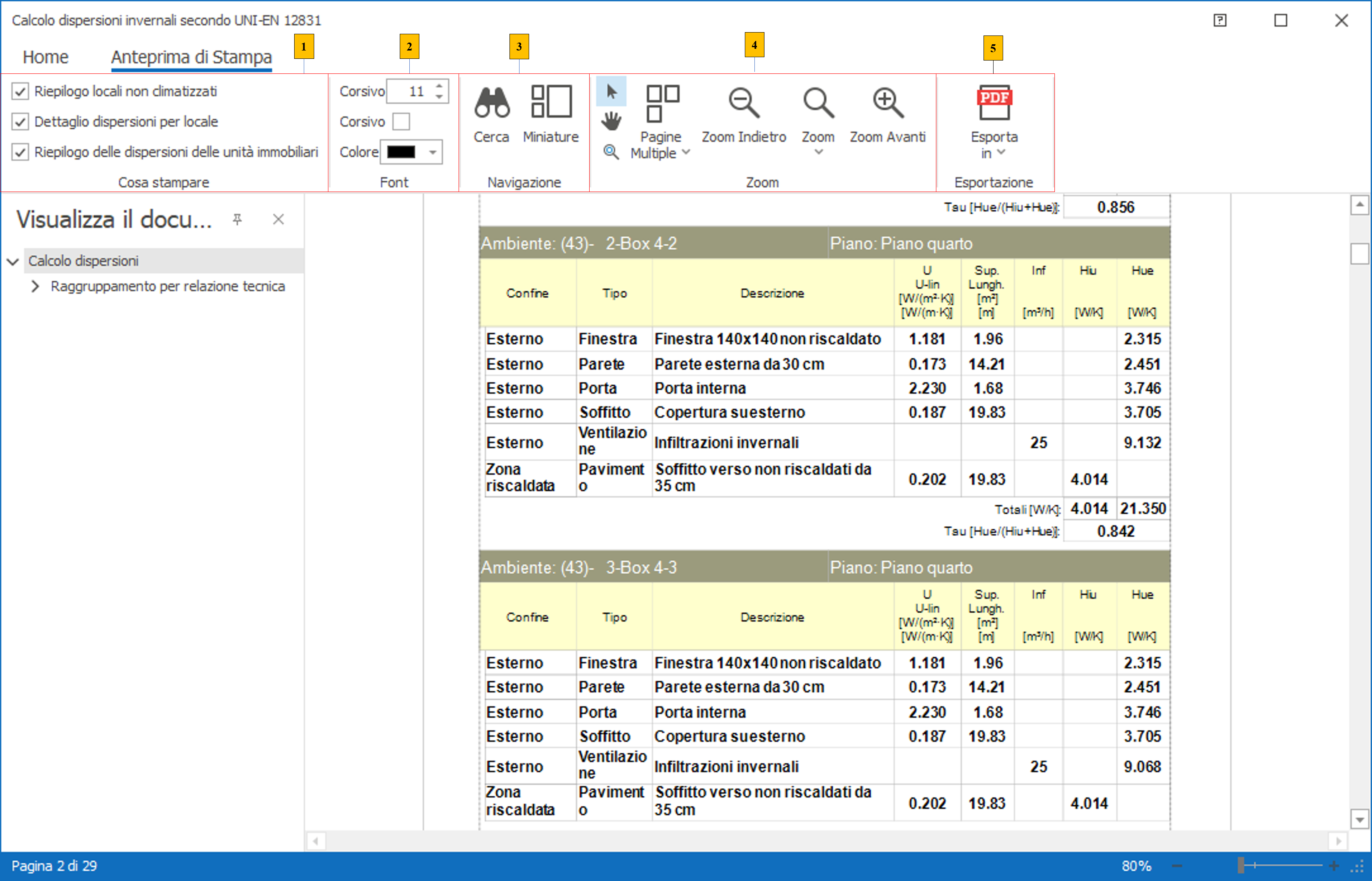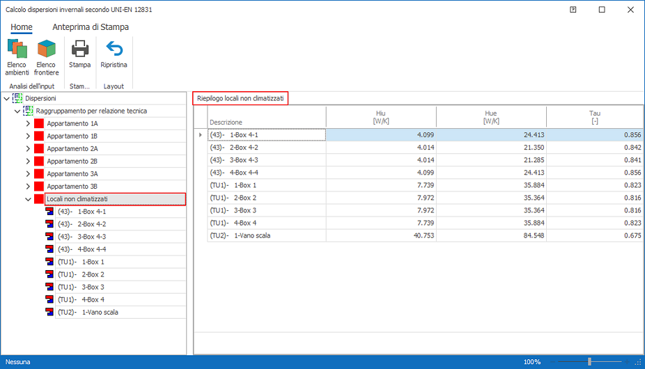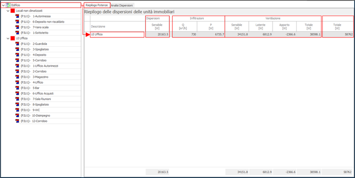 istanza, l'esito del calcolo delle dispersioni secondo UNI