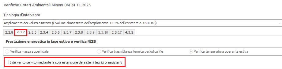 dei volumi esistenti" è influenzato dall'opzione "Intervento