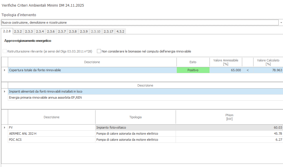 da fonte rinnovabile relativi all'intervento di "Ampliamento