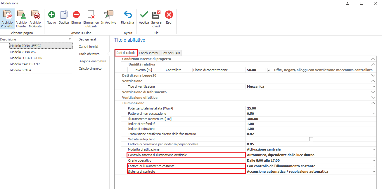 del modello di zona impiantistica (climatizzata o non climatizzata)