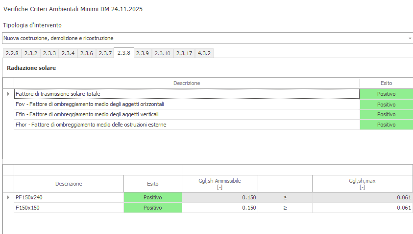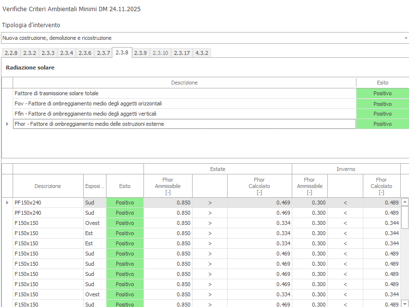 verticale, i fattori di ombreggiamento medi delle finestre