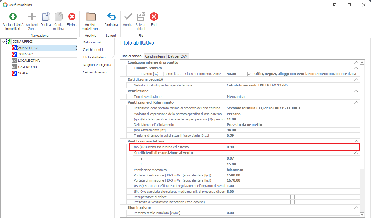 "Titolo abilitativo - Dati di calcolo" del modello