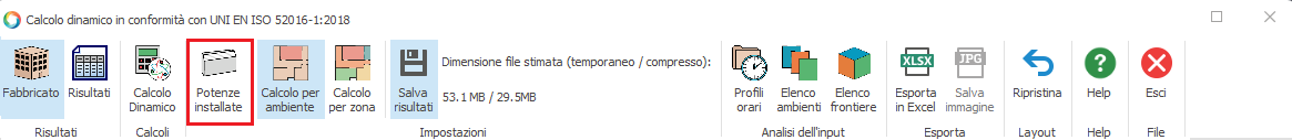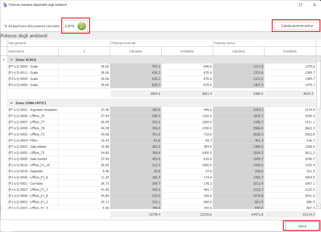 invernale) e il metodo ASHRAE (potenza estiva) e si