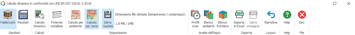 e lancio del calcolo in regime dinamico orario secondo UNI