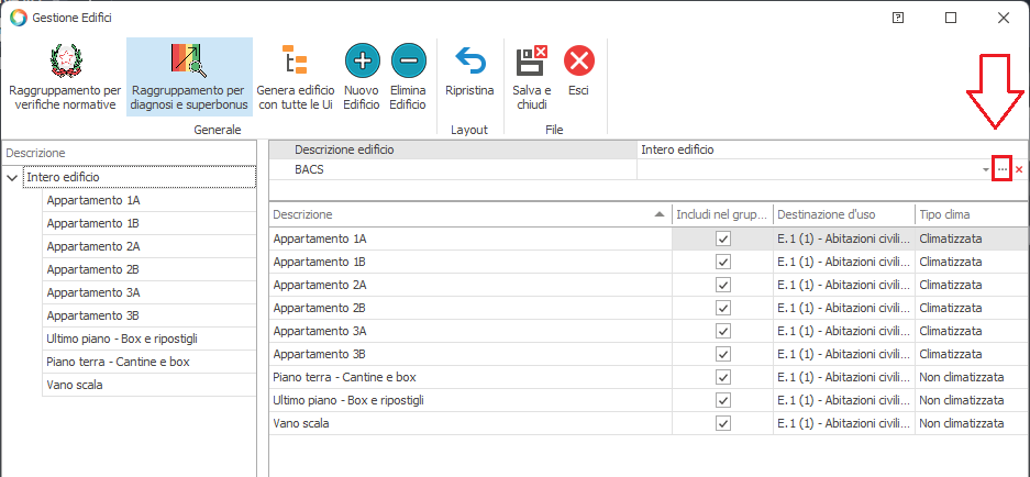 edifici" e quindi posizionarsi nella sezione "Raggruppamento per diagnosi e superbonus".