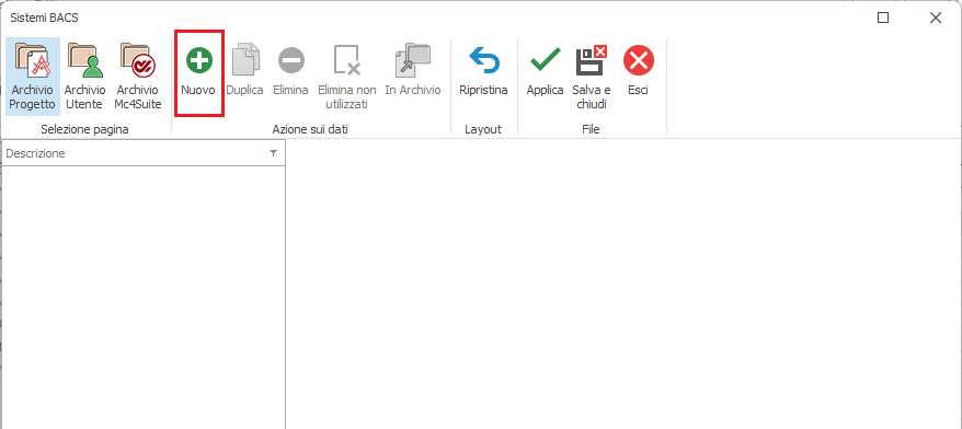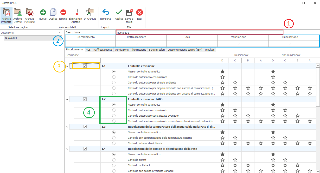 si creerà quindi un sistema BACS da caratterizzare nelle sue