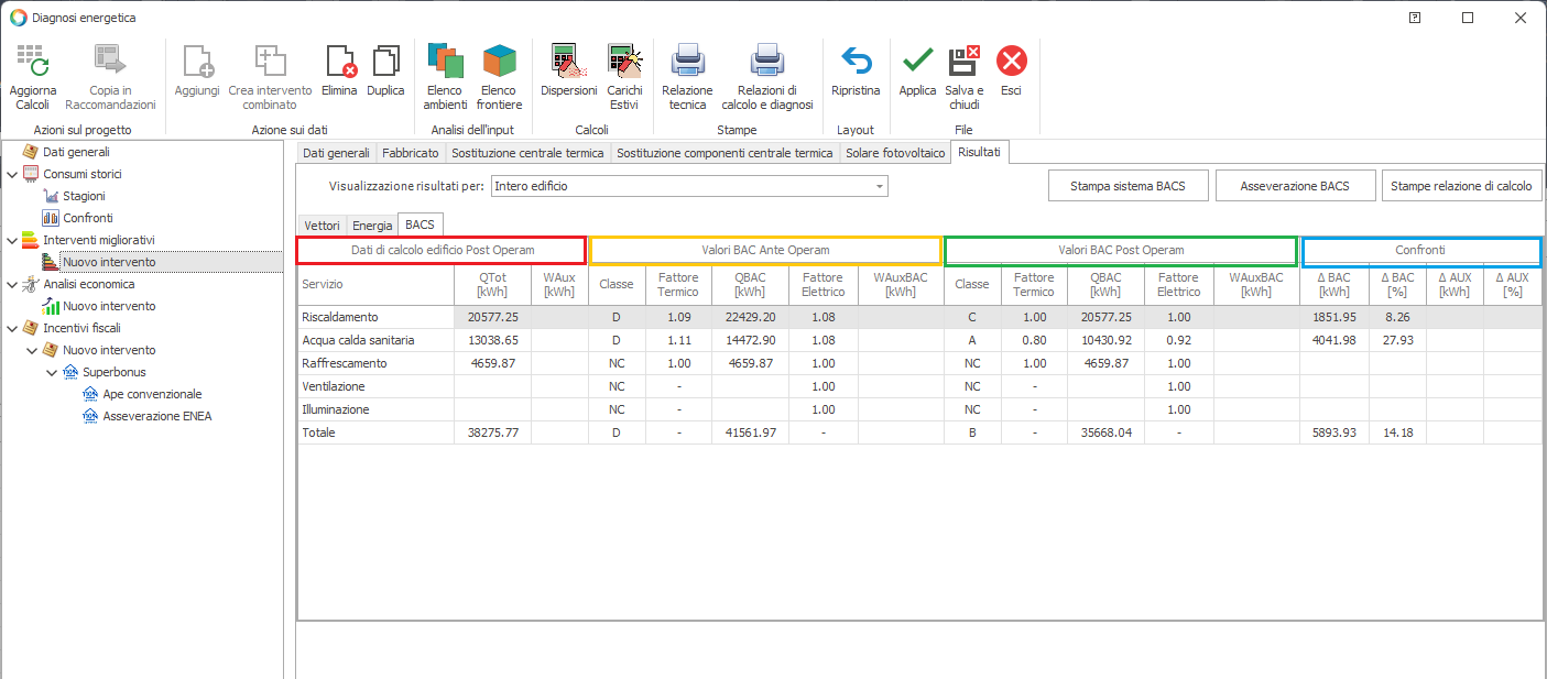 al modulo di diagnosi energetica attraverso il comando "Interventi