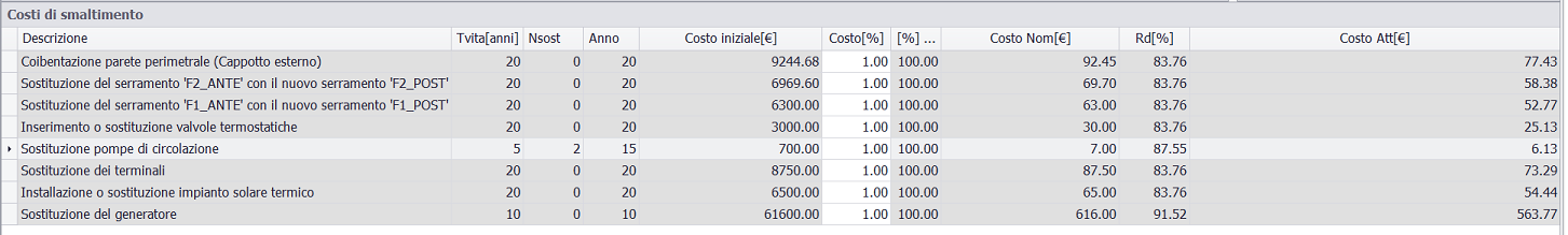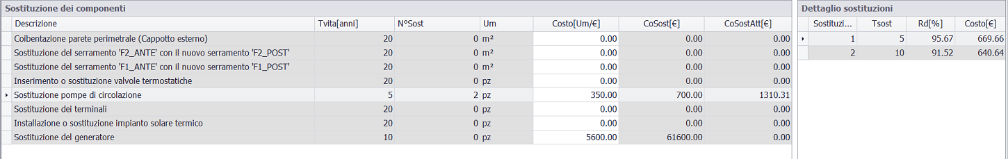 costo della sostituzione è inserito per unità di misura