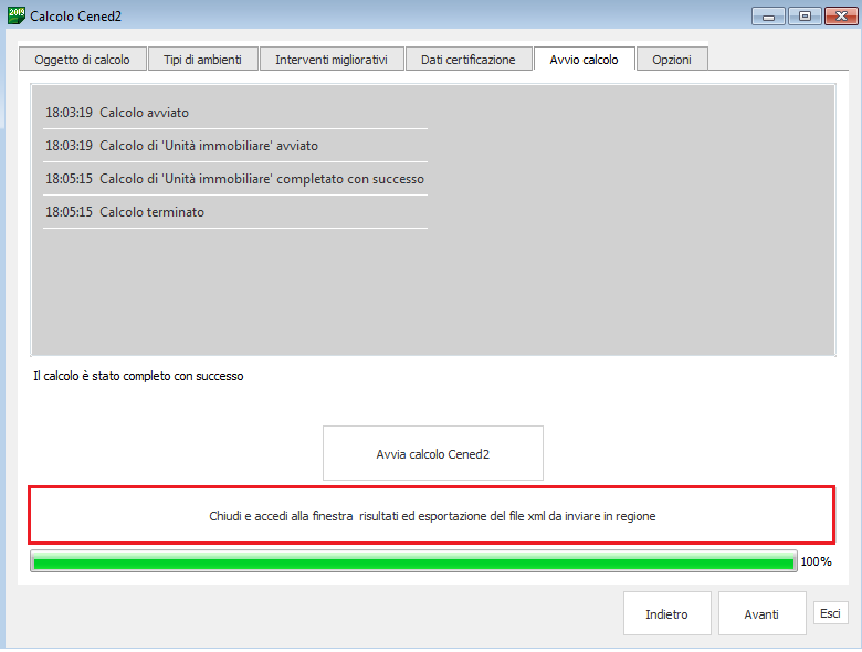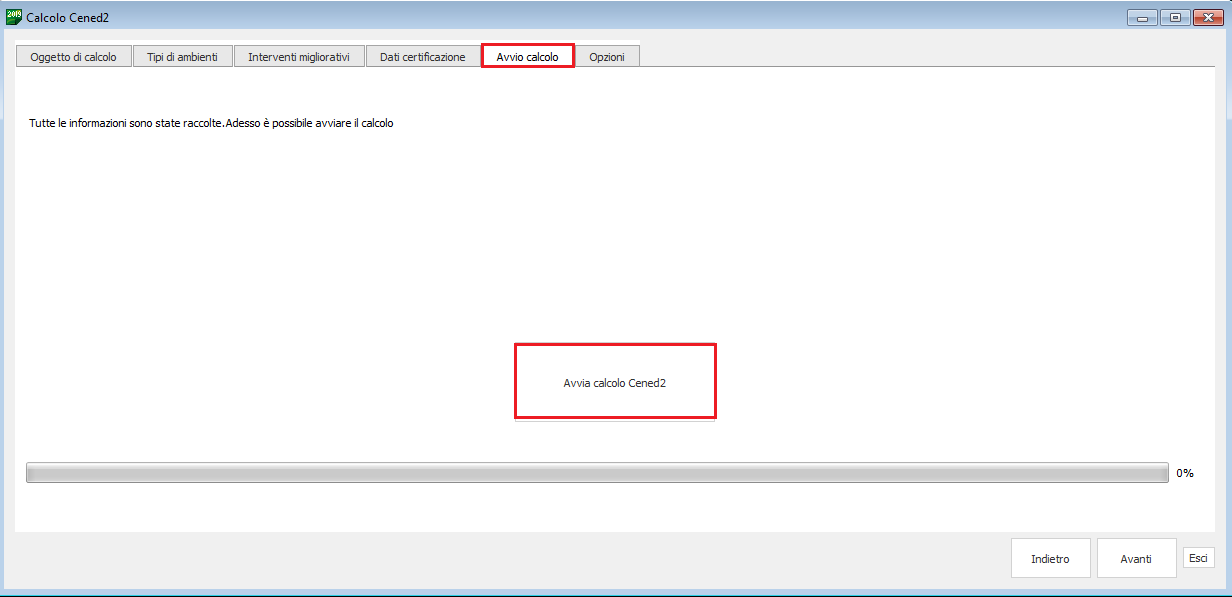 "Avvia calcolo Cened2" si avvia l'elaborazione della