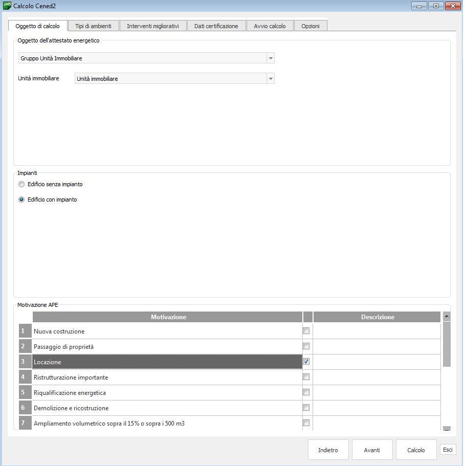 Nell'ambito della sezione "Oggetto dell'attestato energetico",