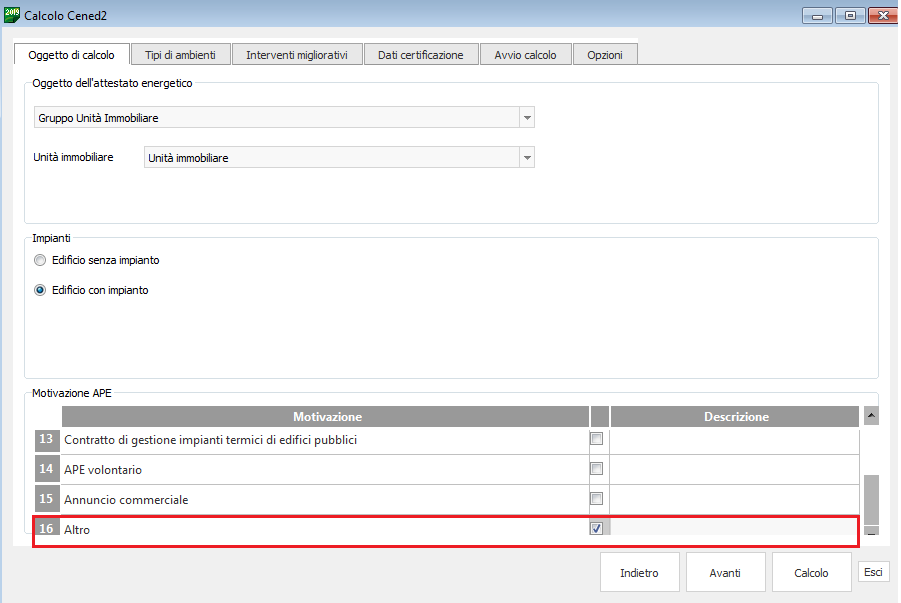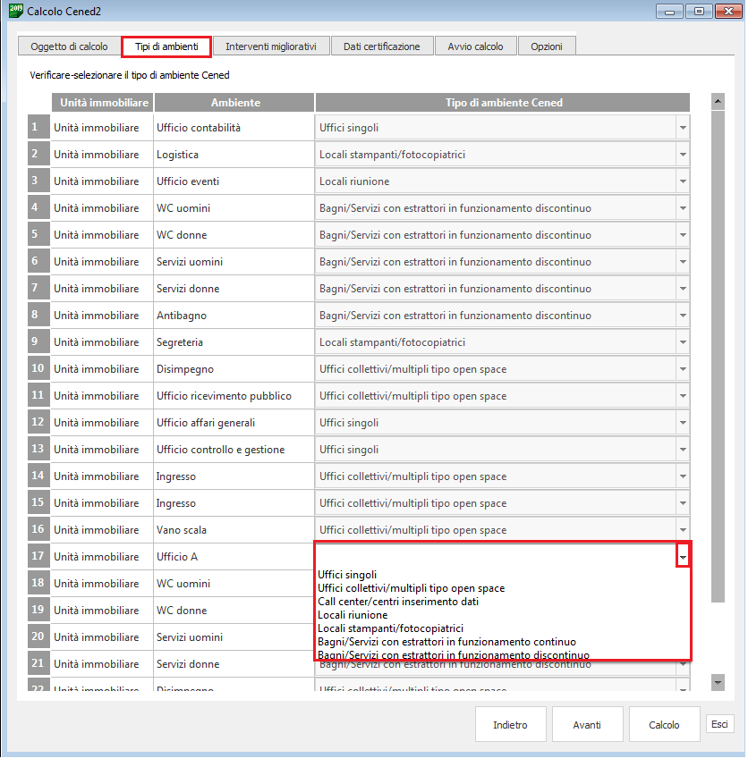 provveduto ad inserire la tipologia di ambiente CENED nell'ambito