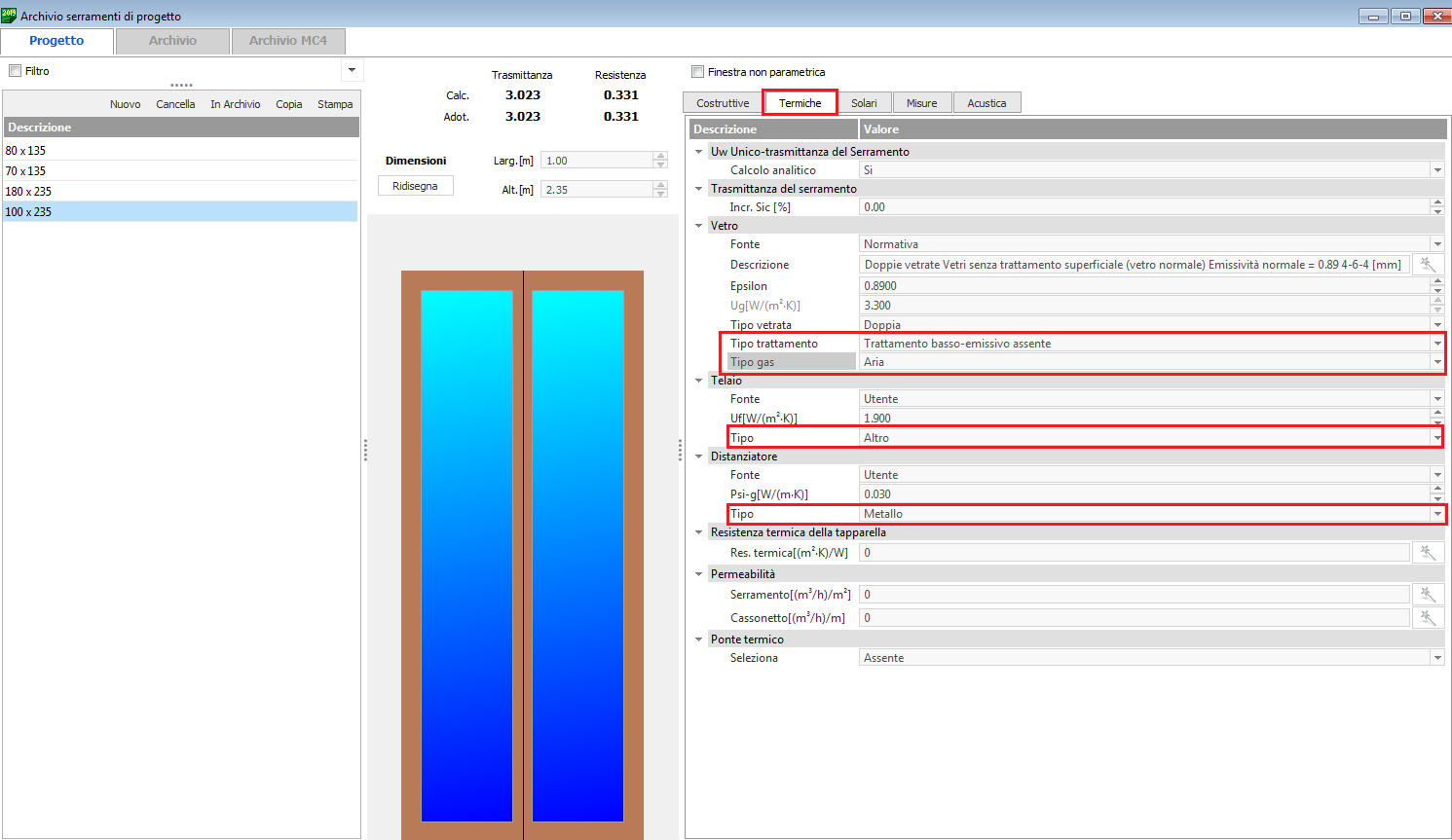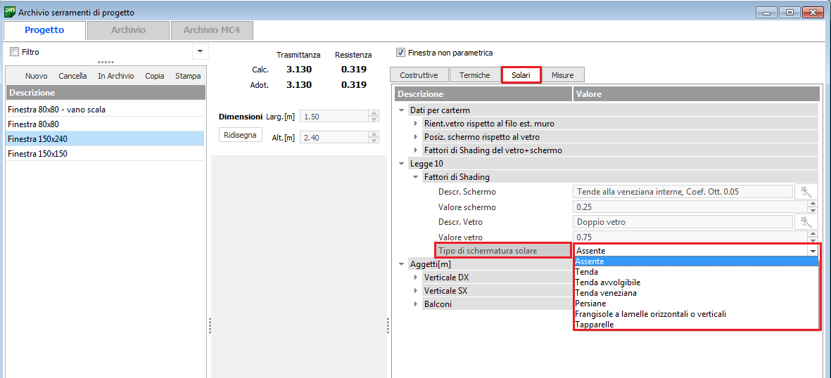 All'interno dell'Archivio dei serramenti di progetto occorre