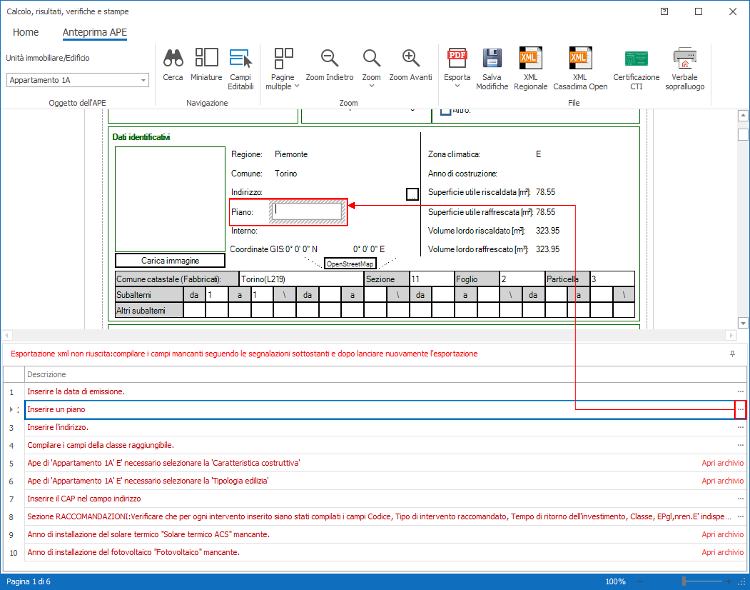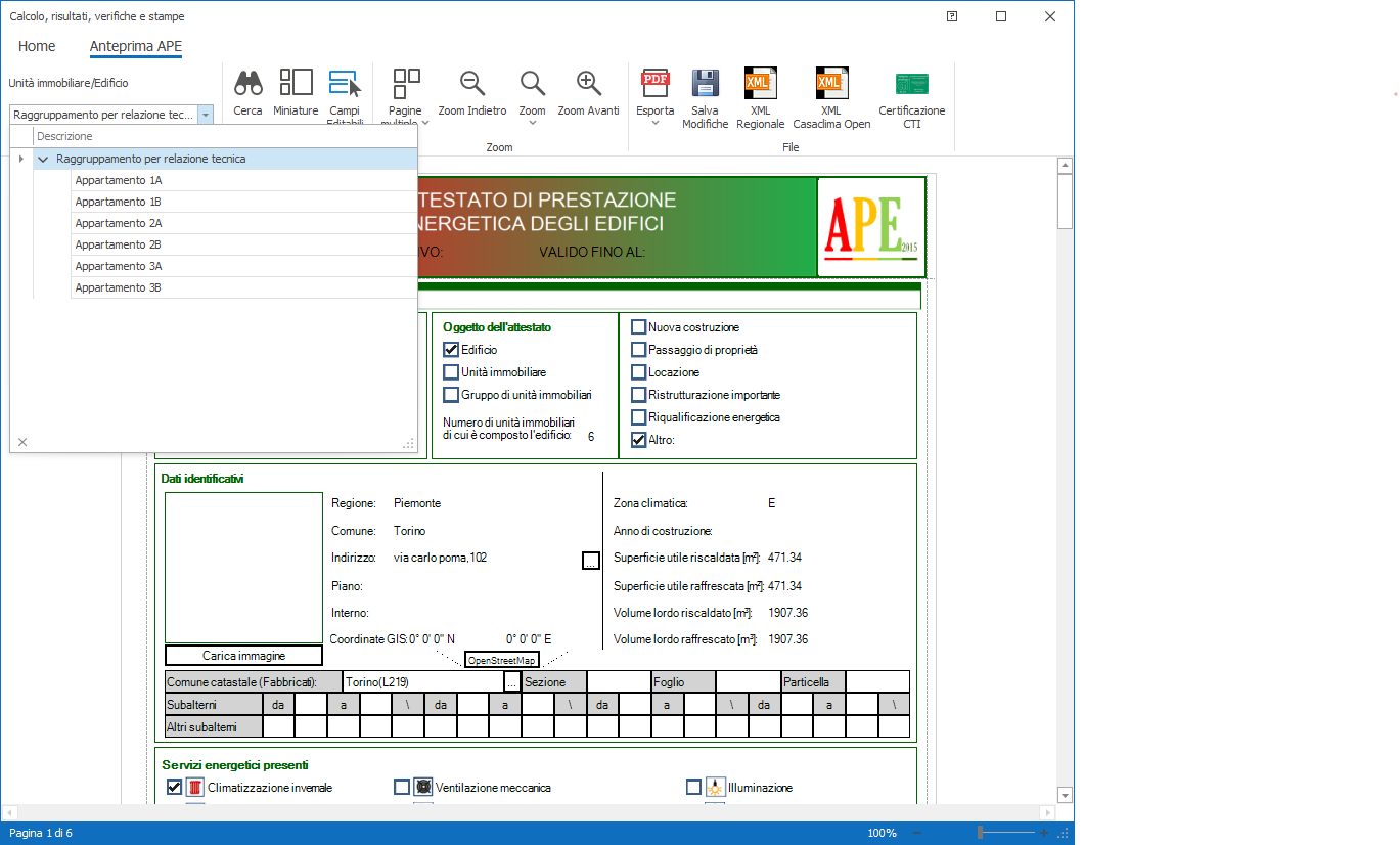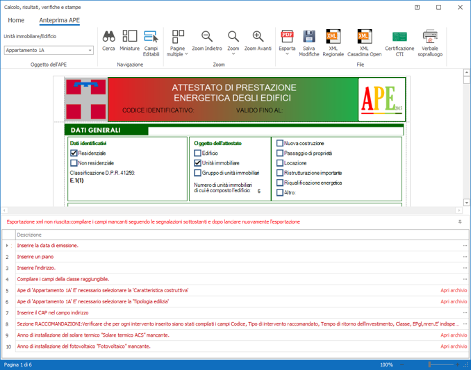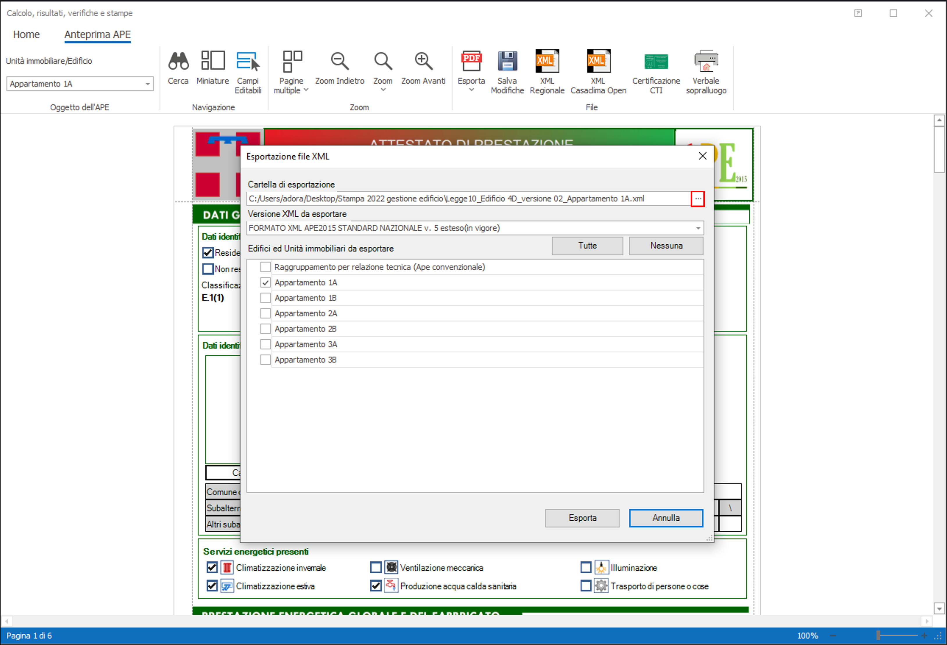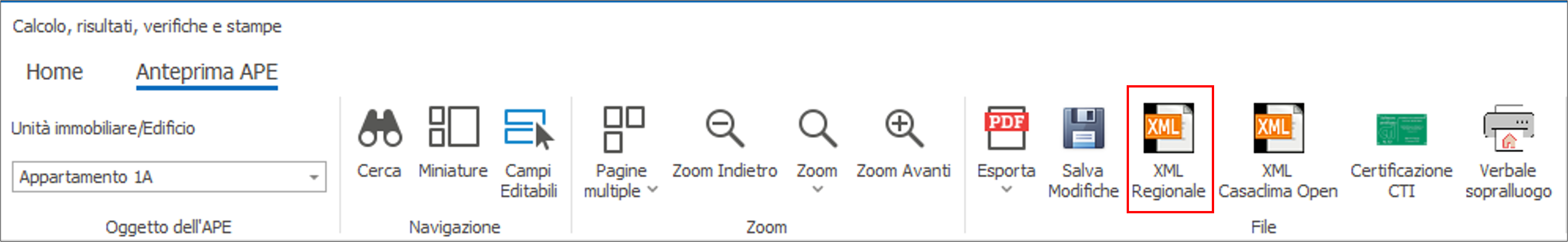 direttamente nel menù di Anteprima dell'Attestato di Prestazione