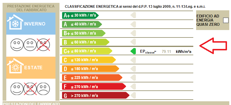 60 kWh/m2 anno, relativamente alla categoria E.1