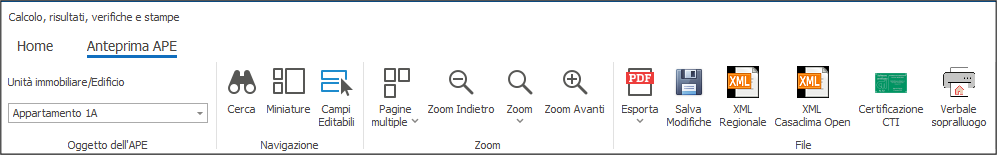 Maschera dei Risultati di calcolo - Stampa dell' A.P.E.