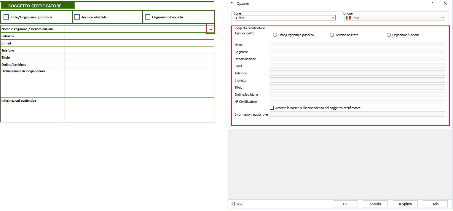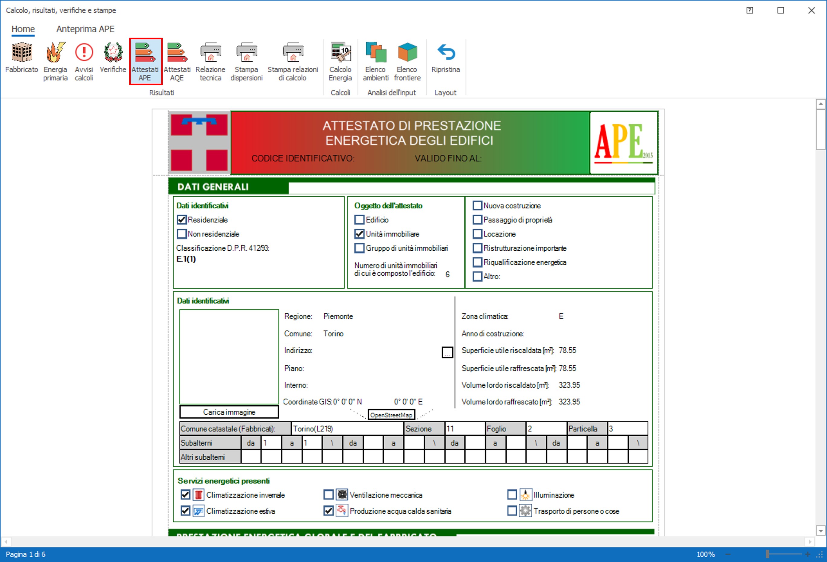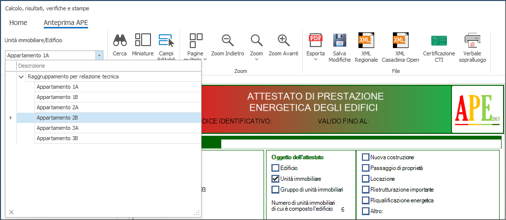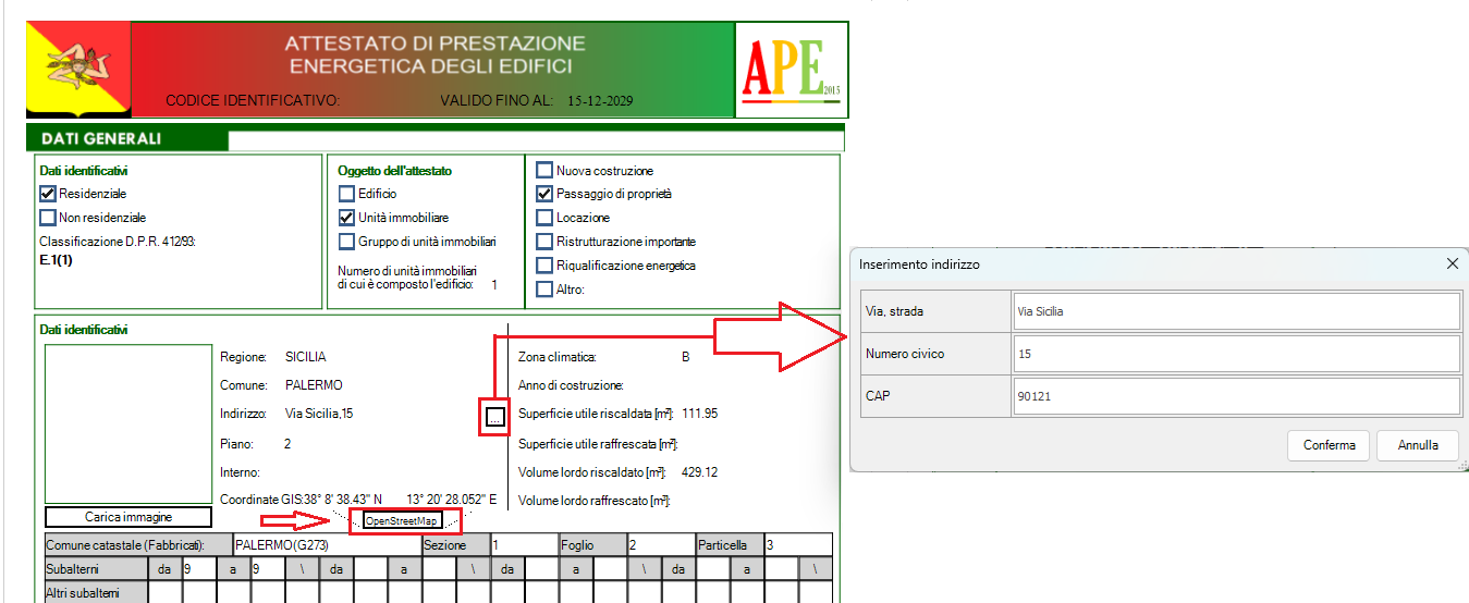 sezione "Dati generali dell'edificio per APE/AQE/XML