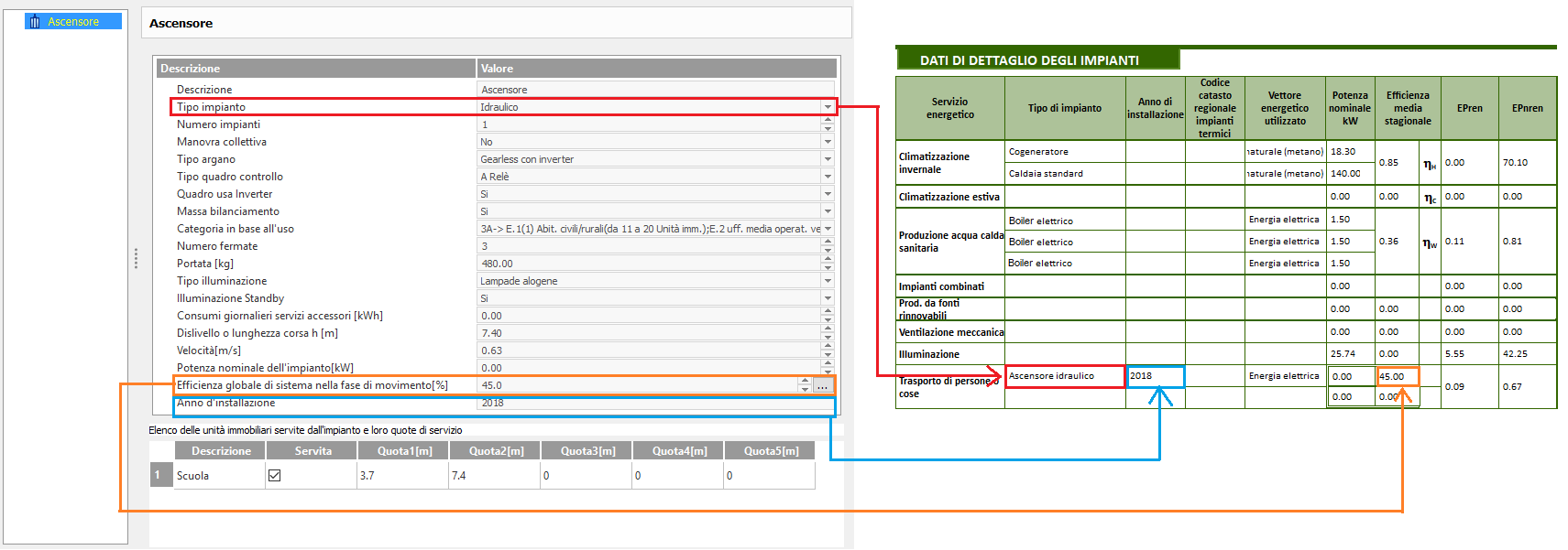 meccanica dell'edificio progettato (EPH,W,V,nren di