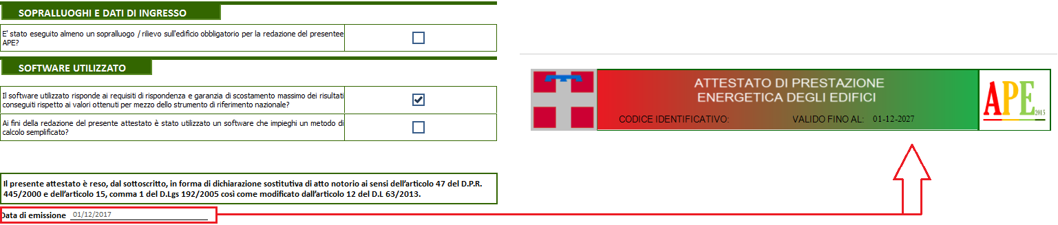 posto superiormente, la data di scadenza dell'attestato, facendola