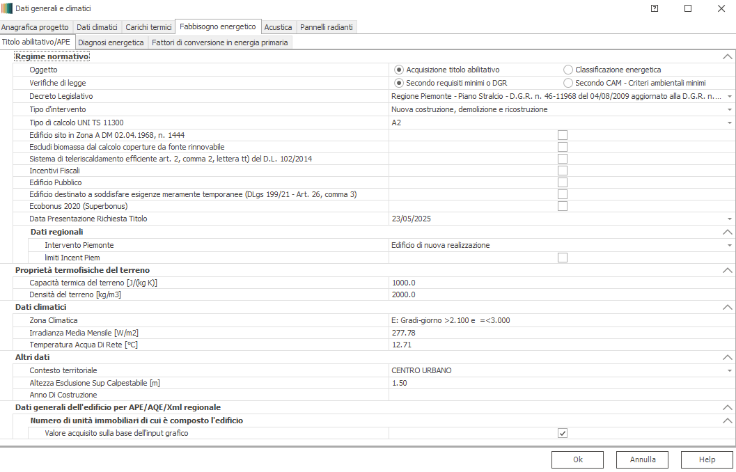 In conformità a quanto prescritto dal decreto regionale il progettista può decidere se rispettare , in sede di verifica delle trasmittanze delle pareti e della prestazione dell’involucro edilizio, valori più stringenti in modo tale da poter accedere ad iniziative di incentivazione promosse a livello regionale. Per attivare tali valori nel programma è necessario porre il segno di spunta nell’apposito checkbox in corrispondenza della voce limiti incent Piem.