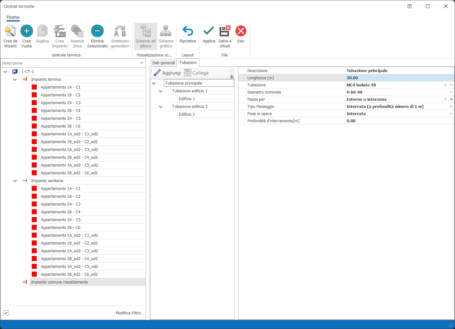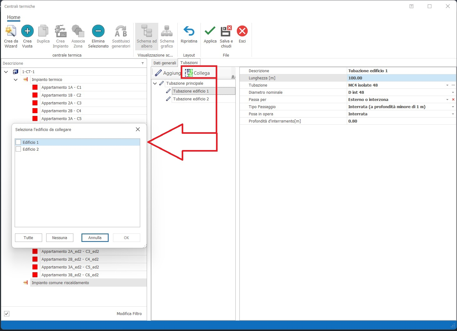 Nella scheda "Tubazioni"