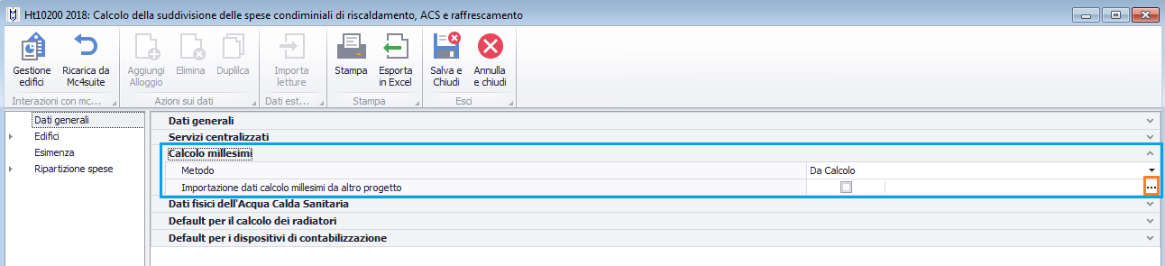 dei millesimi da "Calcolo", tramite il checkbox