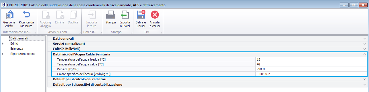 Dati fisici dell'Acqua Calda Sanitaria