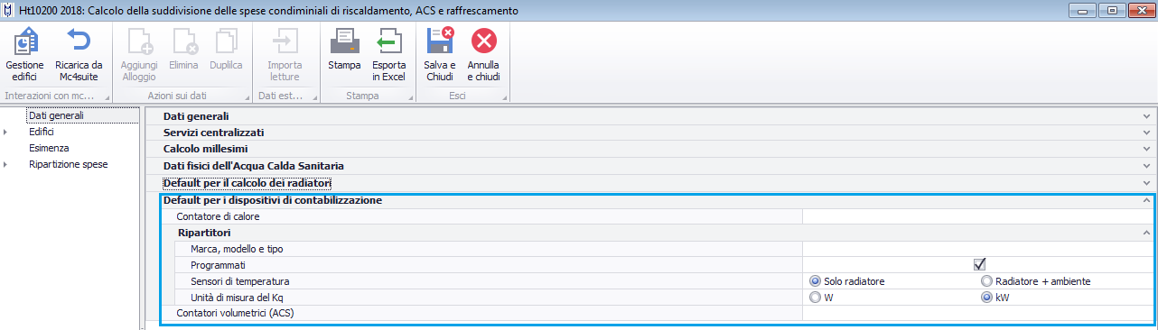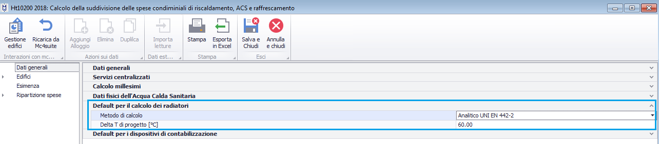 Default per il calcolo dei radiatori