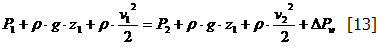- P1, P2 = pressioni statiche nelle sezioni 1 e 2