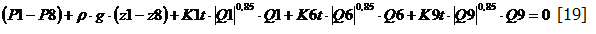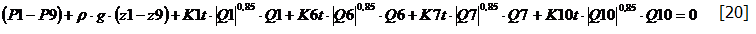 nella quale, per il ramo R9, la perdita di pressione Pw è stata espressa con la [6]. In modo del tutto analogo, si può scrivere la [13] tra il nodo N1 ed il nodo N9, lungo il percorso R1, R6, R7, R10: