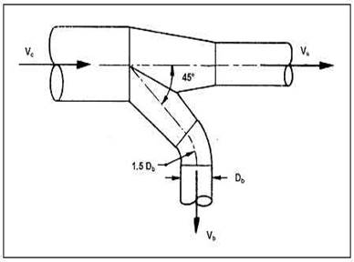 branch conici, con gomito a 45°, branch a 90° rispetto al