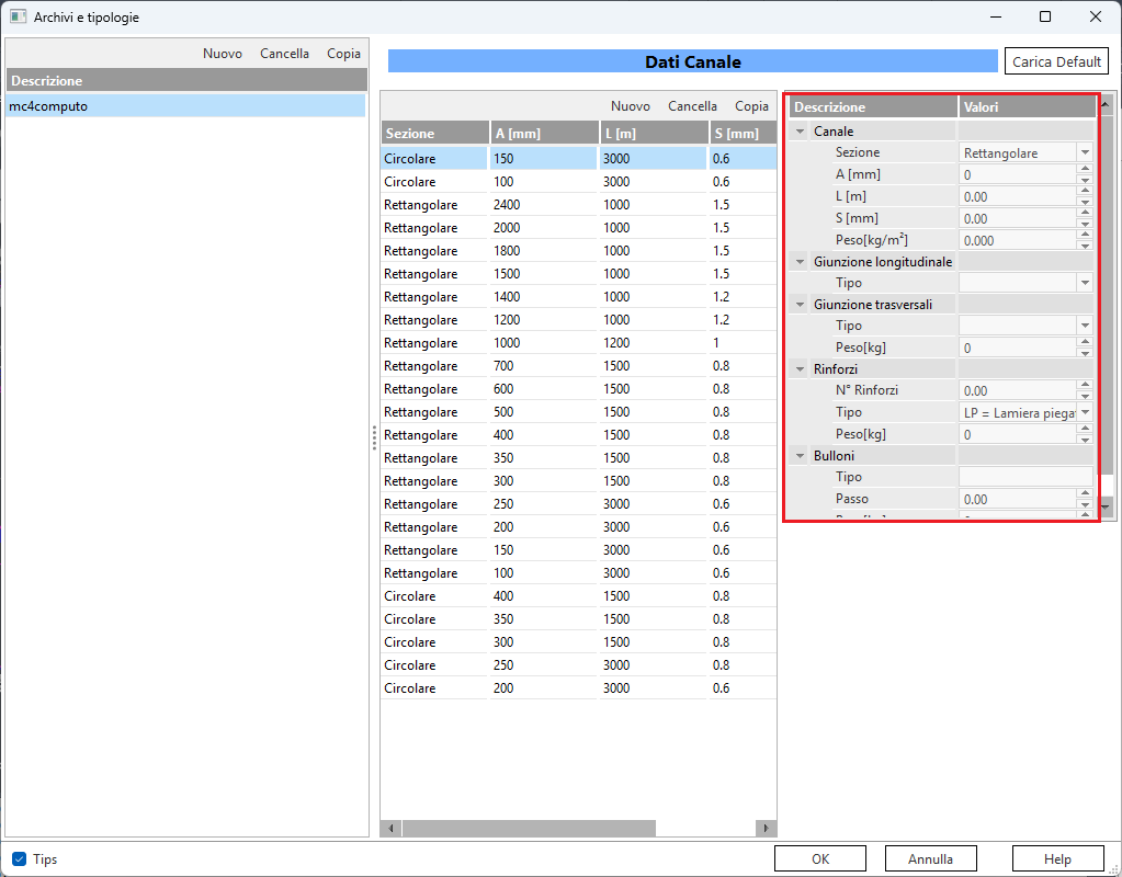 selezionare la tipologia Circolare o rettangolare in base