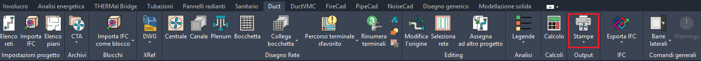 presente nella scheda dei comandi Duct nel pannello