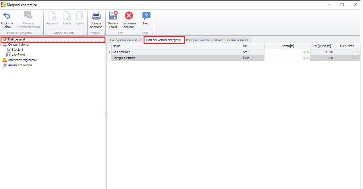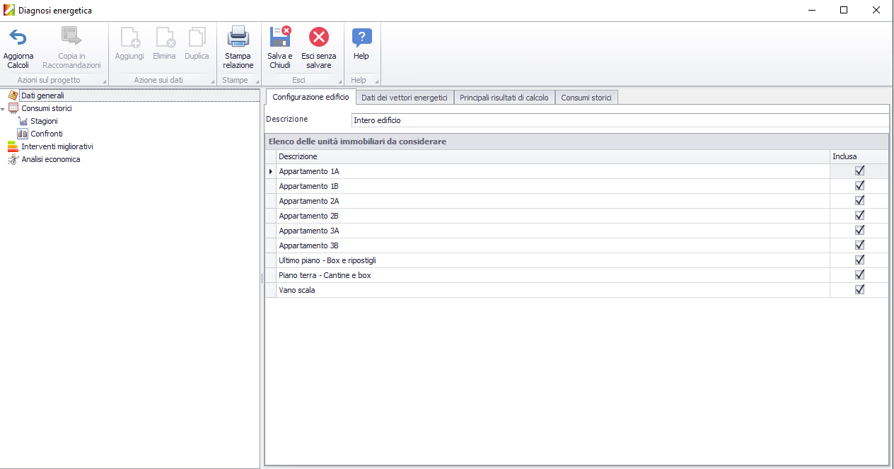 All'interno della scheda "Configurazione edificio"