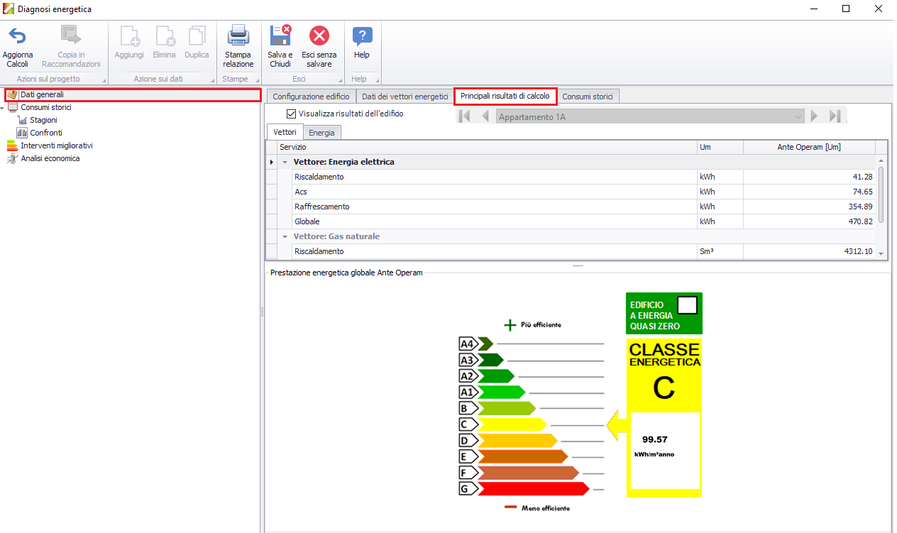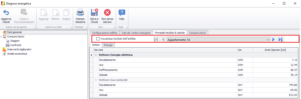 risultati dell'edificio", viene attivata la possibilità
