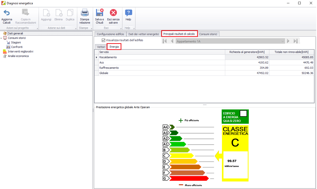 ed in termini di fabbisogni energetici nella scheda "Energia".