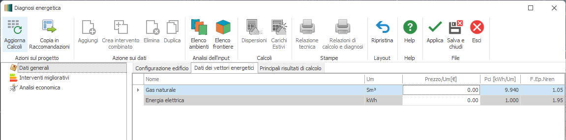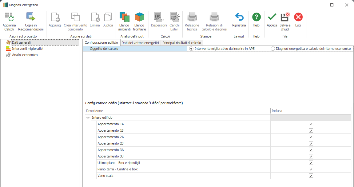 Dati generali - Configurazione Edificio - Diagnosi energetica e calcolo del ritorno economico