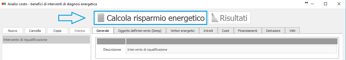 A tal fine occorre cliccare sul pulsante "Calcolo risparmio energetico" posto nella parte superiore della maschera .