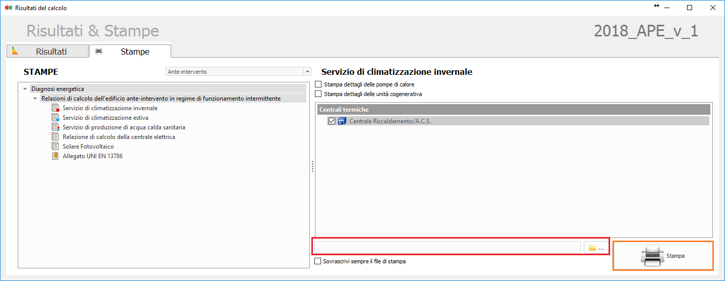 Eseguita la diagnosi energetica secondo una delle tre modalità previste, si potrà procedere alla stampa che ne dettaglia la procedura di calcolo energetico in riferimento al regime intermittente, ovvero considerando il reale profilo di funzionamento del generatore e il reale comportamento dell'utenza .