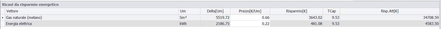 ricavo da risparmio energetico di circa 39300 € in 10 anni