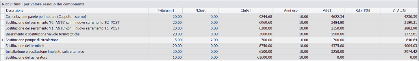 finali per valore residuo dei componenti