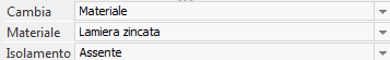 2. Materiale: selezionare il nuovo materiale dal menu a tendina che ripropone l'elenco dei materiali presente nella scheda Progetto del relativo Database