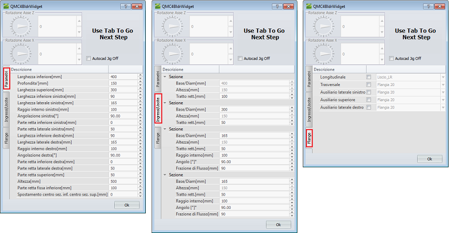 Il cursore del mouse mostra l'anteprima del pezzo speciale e non appena si fa click nell'area di disegno (agganciandosi ad un'altra sezione o meno) il programma mostra la maschera di inserimento (vedi immagine sottostante). Le proprietà mostrate dipendono dal tipo di croce selezionato.