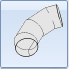 Curva a 90° con raggio interno ed esterno diversi e fori per deflettori