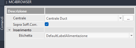- Centrale: selezionare il modello di UTA definito nel relativo archivio - Sopra Soff. Piano Corr.: attivando questo check automaticamente si imposta l'altezza di installazione all'estradosso del soffitto del piano corrente (quota leggibile dall'elenco piani).