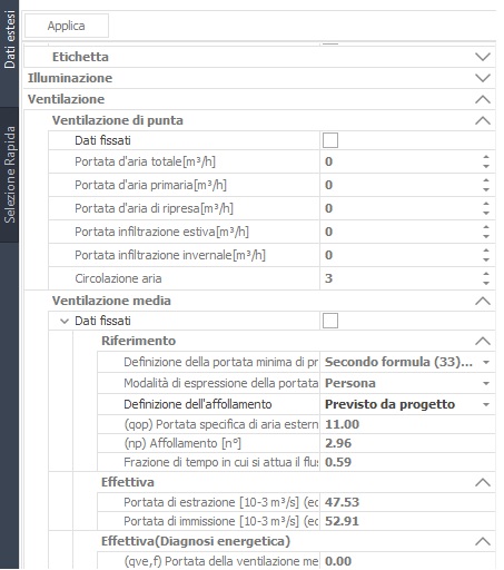 Valore della portata d'aria di ventilazione meccanica