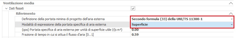 specifica di aria esterna per unità di superficie