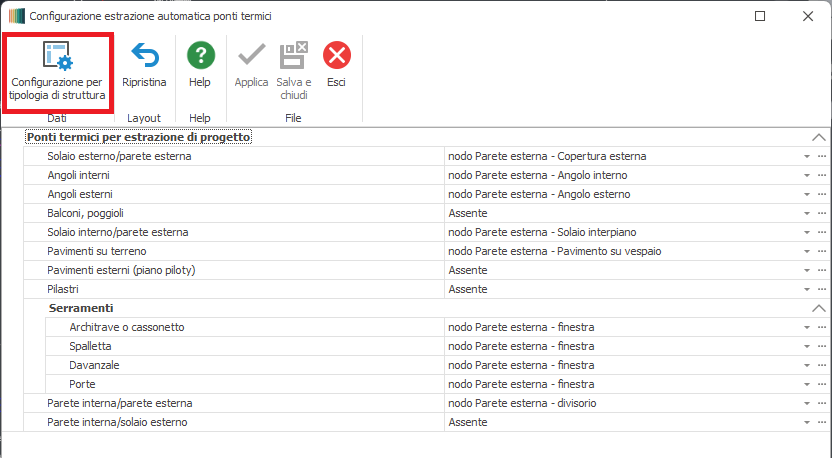 la maschera Configurazione tipologia ponte termico