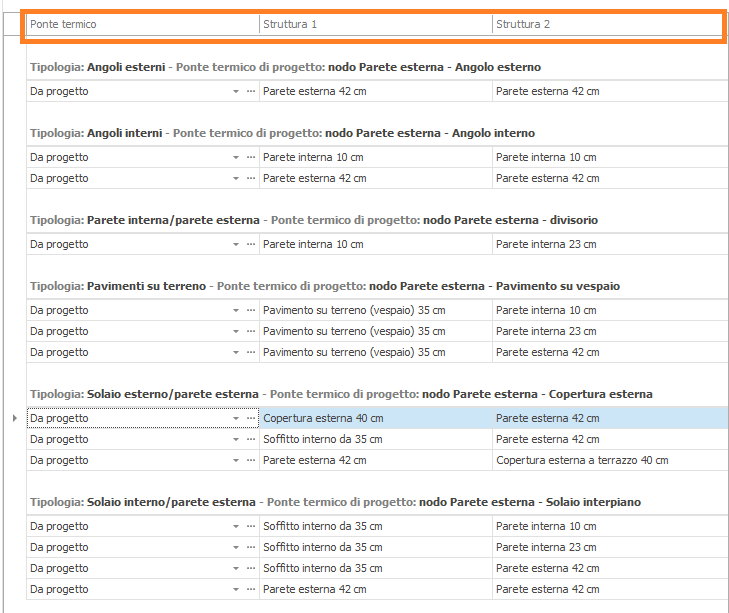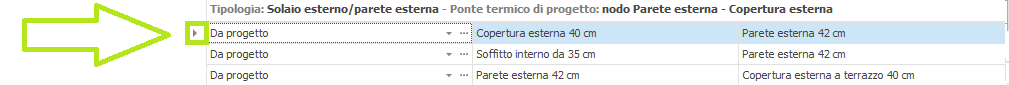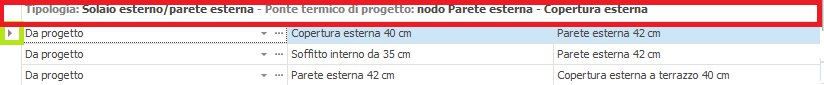 ponte termico selezionato nell'elenco di