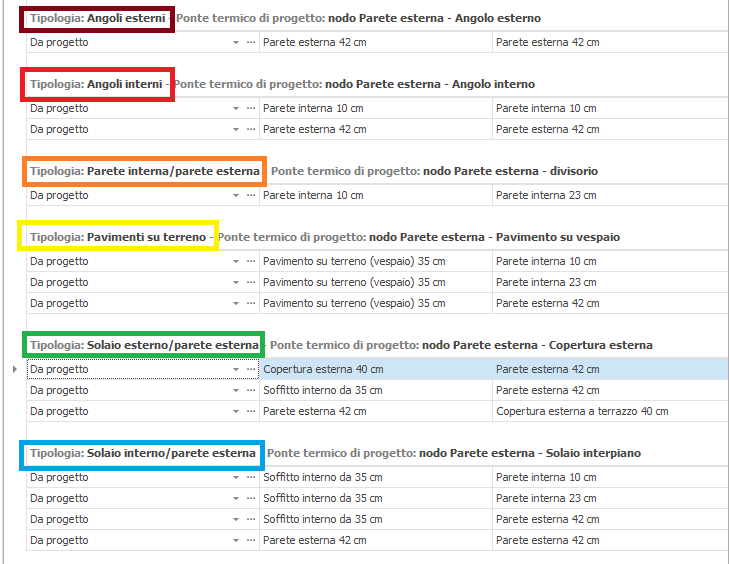 Elenco ponti termici per categoria
